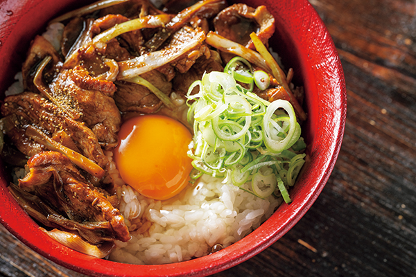 - どんぶりにごはんを盛り、4を煮汁ごとのせる。卵を割り入れ、長ネギの青い部分をのせ、粉山椒をふる。