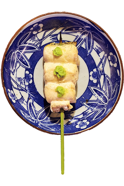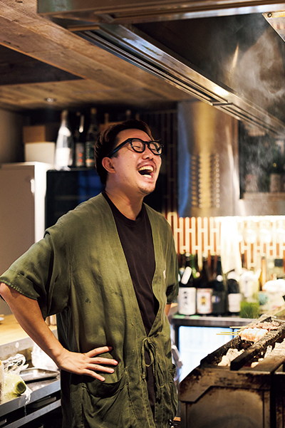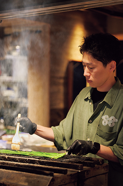 5月に渋谷に開店した「YAOYA Ba」は、大人が食べ、呑み、しゃべり、楽しめる、たまり「場」がコンセプト。味も空間もカッコいい店づくりをウリとする「やおや」グループの6店目です。メニューの主軸は炭火の焼鳥と和を含むアジアのスパイシーな一品料理ですが、炭火の上ではごま油がブースト! スモーキーな薫香と油脂感が融けあい、素材にヤミつき度の高いひとクセある香味をまとわせます。「日本の酒場カルチャーをもっと活気づけたい」という代表の遊津拓人さん。ごま油はヤミつく香りとあふれるうまみで、酒場を元気にします!