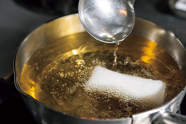- 米のとぎ汁、塩、ミツカン純米酢、三温糖、白酒、タカノツメ、山椒を合わせて沸かし、常温まで冷ます。