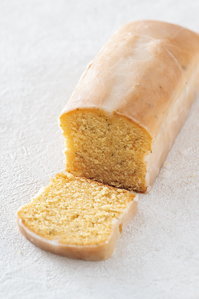 レモンのパウンドケーキに、ハーブの香りを混ぜ込んだ一品。ハーブの変化で四季を演出できる。