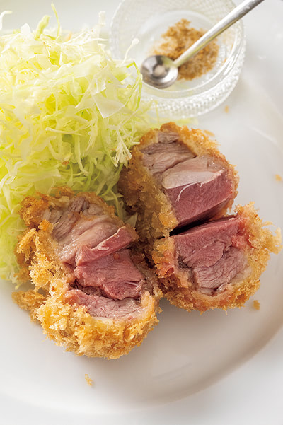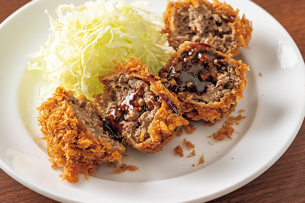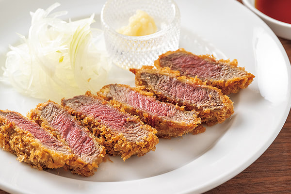 粗めに挽いた和牛100%と玉ネギ、マスタードなどを練り、つなぎはなし。しっかり揚げ切ると、ふっくら、ジュワリと肉汁を感じる肉々しいメンチカツに。肉を噛み味わう幸せに浸る。