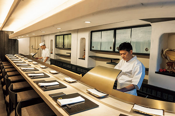 楠さんは名古屋で開業した後、2018年に東京に移転。後継者育成や職人の社会的地位の向上にも注力している。そのひとつが中目黒の店の営業スタイルで、12席のカウンターを親方と弟子で半分に分けて担当する。月に数回は若手が揚げ手を担当する「くすのきの天丼」の日も設け、揚げ方としての鍛錬だけでなく、カウンターでお客と接する場も踏ませている。現在、平均年齢29歳の弟子が10人。くすのき流は日本の天ぷらに明るい未来を感じさせてくれるのだ。